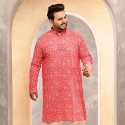 Men's Cotton Blend Dark Pink Long Kurta with Floral Print