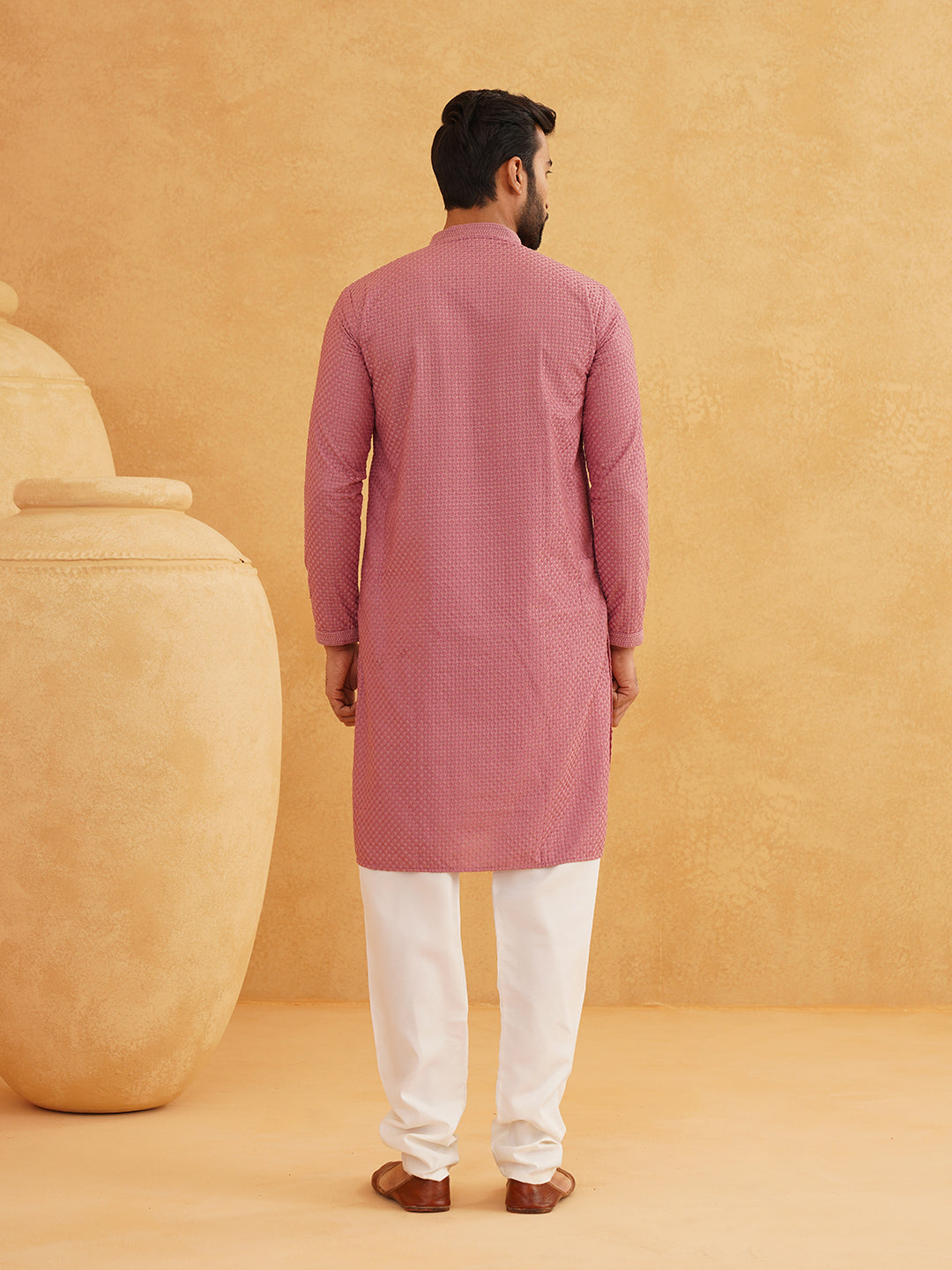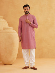 Men's Pure Cotton checked embroidered Coral Kurta